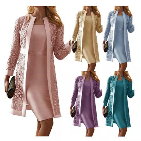 PRETTY STEPS 2024 Abito da Donna Elegante da Sera Formale da Cerimonia in Pizzo Traforato per la Mamma della Sposa
