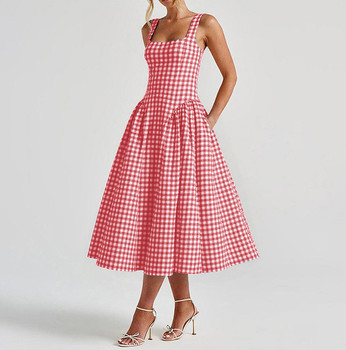 PRETTY STRAPS 2025 Geruite Print Taille-omhullende Prinsessenjurk Sexy Rugloze Halterjurk Dameskleding